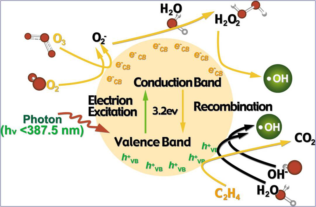 綠之藍產品的優勢在于,傳統的納米二氧化鈦只能吸收400nm以下的紫外光,在自然環境下,紫外光占有比例較低,不足自然光的10%,因而純凈二氧化鈦的基本沒有光觸媒的功效。綠之藍發現納米貴金屬與光觸媒材料進行配位螯合后,會極大提高光生載流子的分離效率和抑制電子-空穴的重新復合,從而進一步拓寬了二氧化鈦的光波吸收范圍,從而大大提高了光觸媒對甲醛、苯、氨氣、TVOC等有害物質的分解效率。