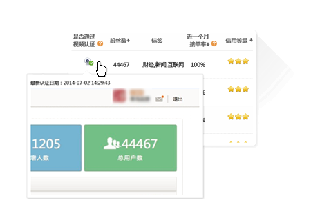 經緯之創平臺通過視頻認證、近期傳播效果圖、信用度、接單率等多種信息維度確保品牌主得到詳實的自媒體信息。