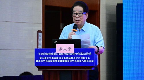 大會開幕式后,舉辦了以“單克隆免疫球蛋白血癥腎損害的中西醫(yī)結(jié)合診治”為主題的第九屆北京中西醫(yī)結(jié)合多學(xué)科融合守正創(chuàng)新大會。來自解放軍總醫(yī)院、北京中醫(yī)藥大學(xué)東直門醫(yī)院、首都醫(yī)科大學(xué)附屬北京朝陽醫(yī)院、中國中醫(yī)科學(xué)院廣安門醫(yī)院、中日友好醫(yī)院、北京大學(xué)人民醫(yī)院、北京中醫(yī)藥大學(xué)東方醫(yī)院、北京大學(xué)第一醫(yī)院、首都醫(yī)科大學(xué)附屬北京安貞醫(yī)院、首都醫(yī)科大學(xué)附屬北京中醫(yī)醫(yī)院等多家醫(yī)院的數(shù)十位專家受邀參加了此次活動。
