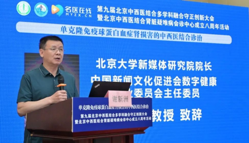 中國新聞文化促進(jìn)會數(shù)字健康專業(yè)委員會主任委員謝新洲教授出席了會議并致辭。謝教授在致辭中,首先代表中國新聞文化促進(jìn)會數(shù)字健康專業(yè)委員會,向北京中西醫(yī)結(jié)合腎臟疑難病會診中心成立八周年表示熱烈祝賀!會診中心始終關(guān)注新技術(shù)在醫(yī)療領(lǐng)域的應(yīng)用與創(chuàng)新,致力于探索AI助力全民數(shù)字健康的有效方式,積極開展“AI+醫(yī)療”建設(shè),推動醫(yī)療服務(wù)質(zhì)量提升。