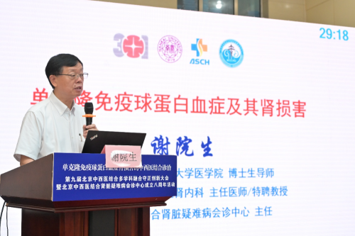 北京中西醫(yī)結(jié)合腎臟疑難病會診中心主任謝院生教授做了《單克隆免疫球蛋白血癥及其腎損害》的學(xué)術(shù)報告。