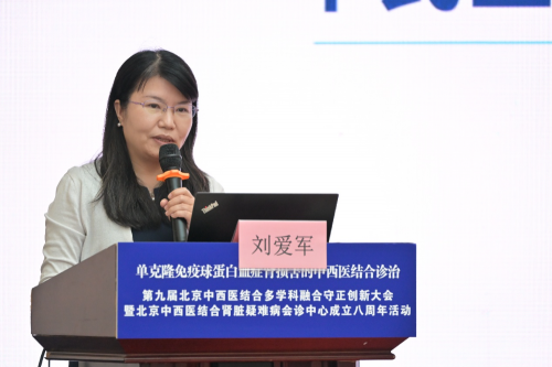 首都醫(yī)科大學(xué)附屬北京朝陽醫(yī)院劉愛軍教授做了《原發(fā)性華氏巨球蛋白血癥腎損害的西醫(yī)診治》的學(xué)術(shù)報告。